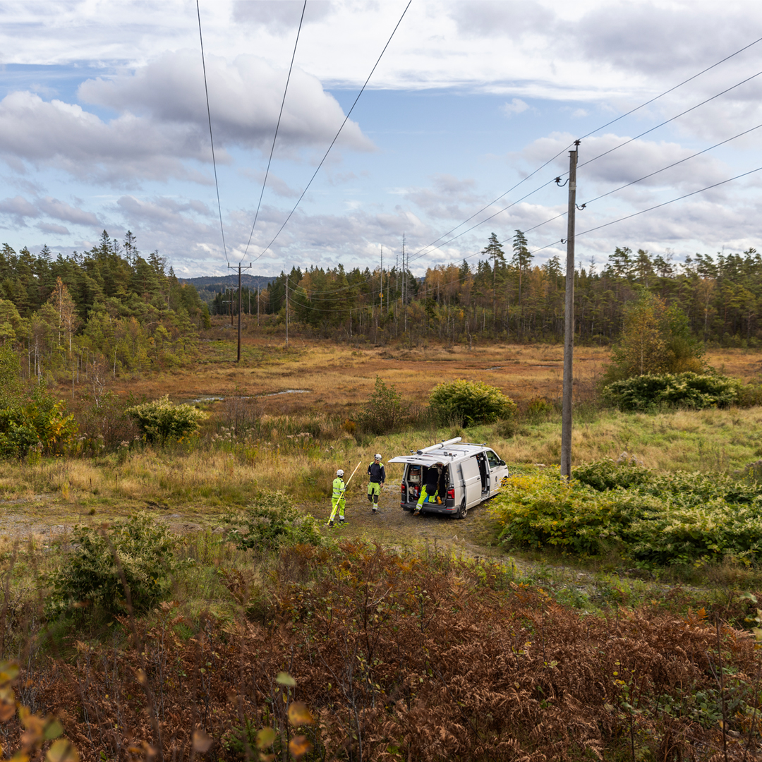 Vi reparerar, bygger ut och underhåller elnätet. Det handlar bland annat om att laga fel och hålla ledningar fria från nedfallna träd. - Arbete ute i fält